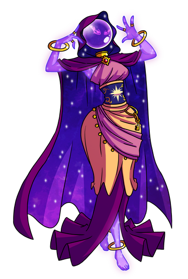 Either that's Madame Crystelle as a human or a Crystelle-inspired alt costume for Menat from "Street Fighter".
