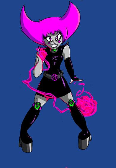 Another one I bet most people haven't heard of unless you've watched the Teen Titans animated series. I never even heard of her until I watched the cartoon and I thought she had such a unique design. The comic version looks nothing like the animated version and I think that's a good thing, because the comic version is a very bland basic sorceress look. I tried to update her look to appear more like what a teenager would wear. I went for a cyber gothic punker type look to fit her personality and powers. Her hair was a little tricky, because the animated version is very unique while the comic version is well... bald. I used some weird horn like hairstyle to mimic her weird head piece that she wore in the comics. She's the black magic casting sorceress that brings nothing but bad luck, it's Jinx!Instagram- heyliger_art