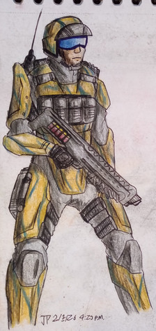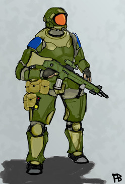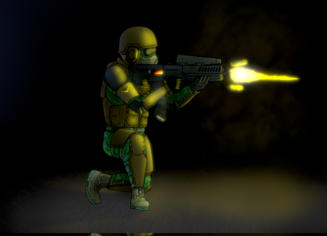 This is a mercenary wielding a Medusa Mk3 carbine. Although how a special ops weapon come into his care is entirely up to speculation. He is in desert camo. At first I was to lazy to colour him, but I'm glad I did. Plus My internet is shitty nowadays...Enjoy