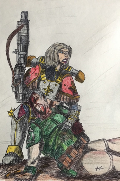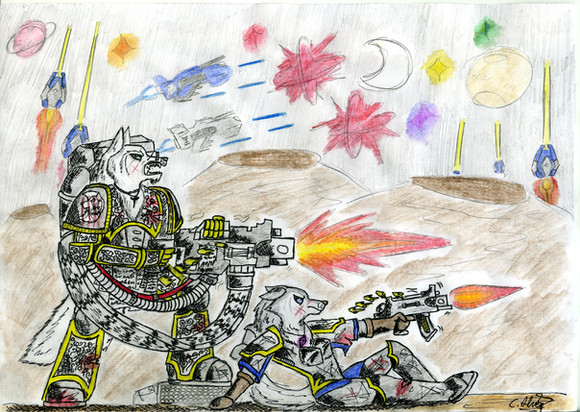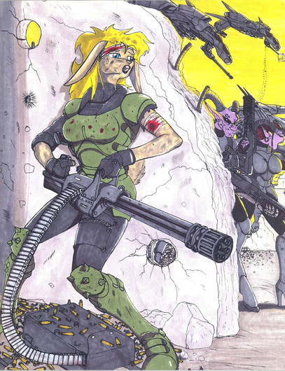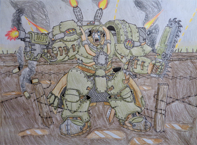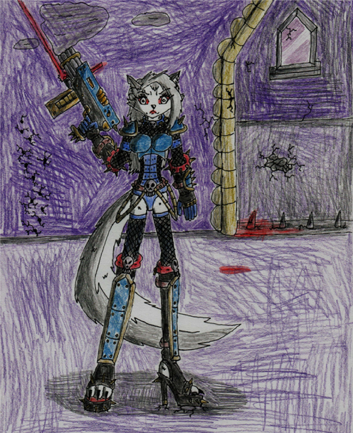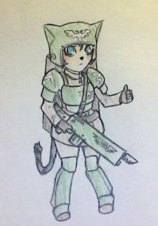(Weird note: Kitty's initial appearance was based on the Nomad Daktari model from the Infinity game, which evolved to become the basic Catkin field medic design. She gained her armor and weapons after a particularly nasty incident when she was first assigned to the Ironsides. Basically she snapped after patching up so many of her comrades following an Imperial gas strike, stole a suit of armor and scattergun, and marched out onto the battlefield herself, inadvertently spurring on the rest of her unit to follow and push through the enemy lines. Last Legion command was about to have her discharged then and there, but Warmaster Drougan and the rest of her unit from that night persuaded the brass to give her a second chance, albeit with a grain of suspicion.)