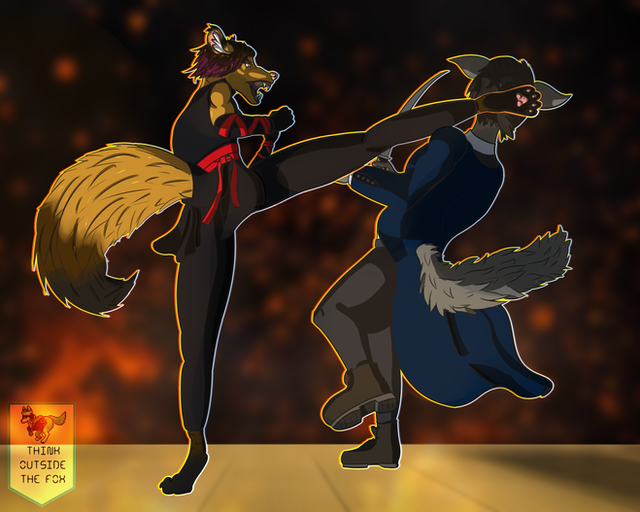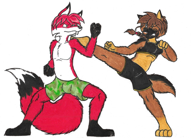 #anthro #anthros #fox #foxes #furries #furry #spar #sparring #dalmatian #dalmatians #furryanthro #martialarts #sparringmatch