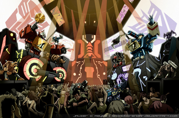 i love pictures like this, just a whole bunch of cybertronians (mostly soundwave) rocking out