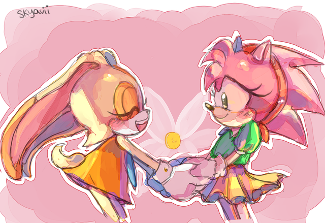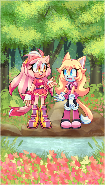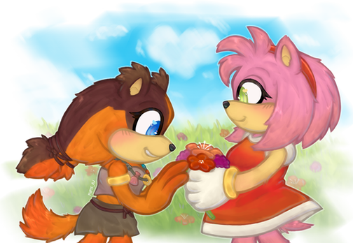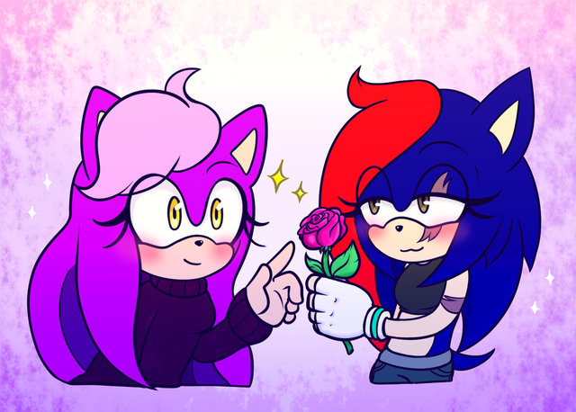 Commission for RubenRayos on twitter!Havin Rosy from @JoshTarwater's AU ''SONIC RING BOUND" buying her some flowers!