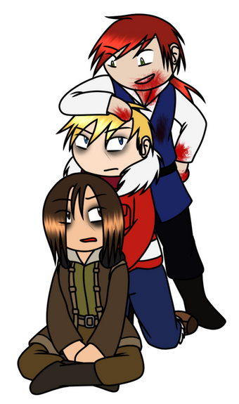 The design for Ragna The Bloodedge in Part 1 and Part 2 of Grimoire Blastia. I hope it's how you envisioned it XD.BTW, the design on the left was half inspired by the official art and the concept art for Ragna