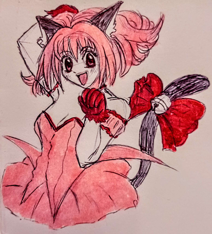 In the spirit of the new Tokyo Mew mew Anime i thought it would be fun to try and redraw a few Tokyo mew mew screenshots. and i thought it would be fun to do it with my colored pencils that im still getting used to using. Back in the day on youtube before i migrated to DeviantArt my sister and i were all about Tmm Amv's and color overs. we did all kids of 'adoptables' that were only of colored over mew mews. i had huuuge folders full of these things! i even got into doing color overs of gif's so they moved! it was so much fun! so Tmm has a huge spot in my heart <3 im excited to see what happens in the new anime, if its brand new, if its a la mode, if they skip a la mode and go directly into the new manga chapters they released, Maybe they will even do a anime for the game and Mew Ringo will finally get her time in the sun! never got to find a english version of that game so im still curious about it's plot. ANyways i hope to do each of the mew's here (including Ringo and Berry)