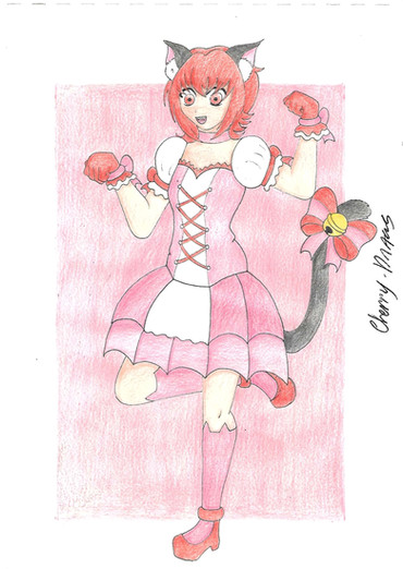 I really like how this one came out, it might be my favorite so far. unfortunately this also brings it to 3 mews to whom i have somehow managed to FORGET TO SAVE the psd files of. So if i couldnt easily make a group pic in the end before now i definetly cant without doing all the work of redrawing Ringo, Pudding and Lettuce.. >< i referenced the shadding on the original for the shirt and hair bow and i think i did pretty good