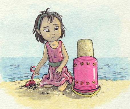 The woman at the end is the child at the beginning. The shell reminds her of childhood memories.
