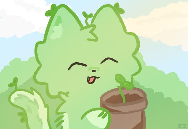 #cat #digitalart #plants #originalcharacter #catcharacter #cute #digitalpainting #gift #nature #pottedplants #wholesome #sermame