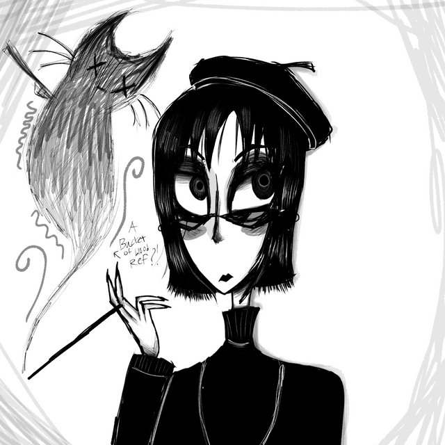 #digitalart #gothic #originalcharacter #sketch #blackandwhite #blackhair #bowtie #butterfly #dark #drawing #goth #humanoid #illustration