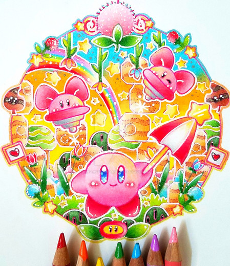#fanart #traditionalart #videogamefanart #nintendo #rainbow #kirby