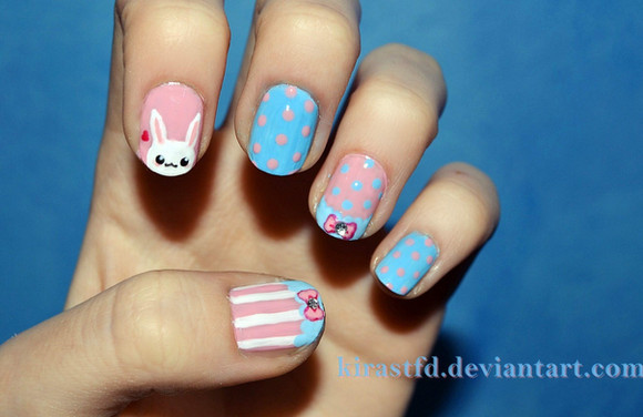Here's something cute for heavenlynailart's challengeI really enjoyed painting these, it has been a while since I last did something seriously cute eheh