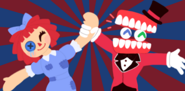 Some more TADC, here's Gangle! Both her happy and sad masks.I was worried she’d be hard to draw cus of her ribbons but honestly it wasn’t has hard as I thought, getting the body to look right was still a bit tricky though.
