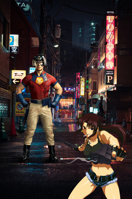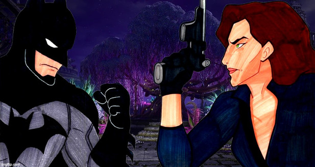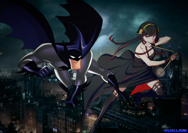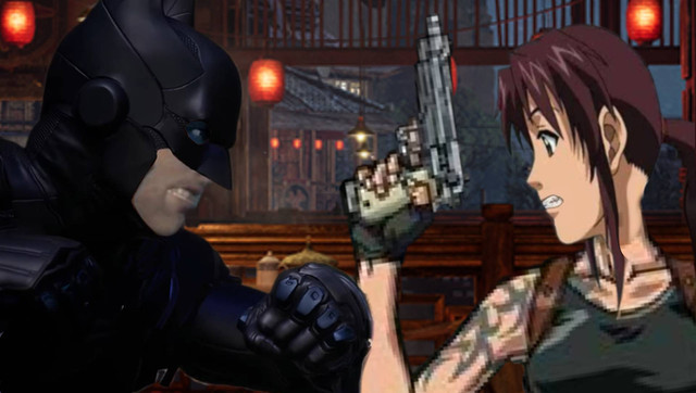 This is a scene from my crossover universe ofΒ Earth 897.Revy goes to Gotham city and meets up with the Dark Knight and Batman sees there's something fishy about her and he asks her a bunch of questions.Β