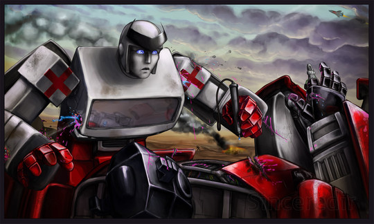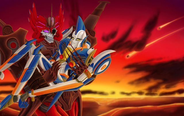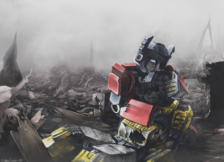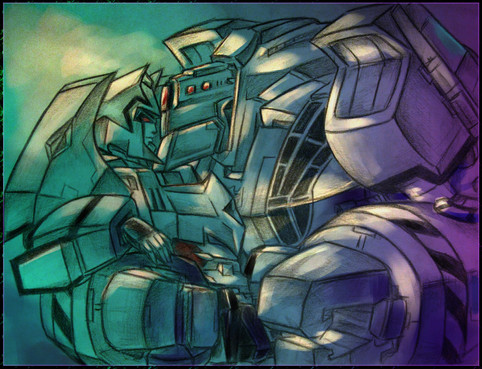 I don't mind at all that you're in a G1 Megatron craze, because along with Shockwave, he's my ultimate fave. I love how dark and desperate this is. The soft, warm colours really give it this destructive feeling, but a compassionate one, too. Such beautiful work!