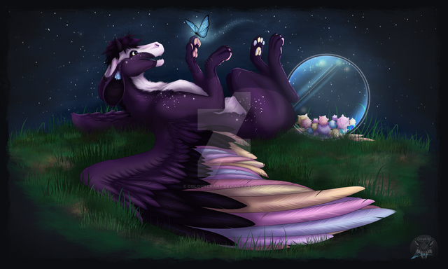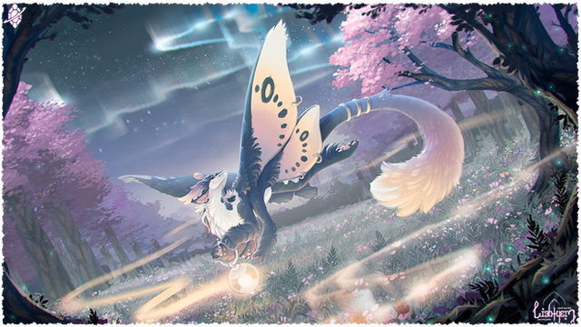 #anthro #black #character #commission #cute #design #digi #fae #flowers #furry #kala #moon #night #pink #protogen #rune #saber #sky #stars #white #werkman #drelteo