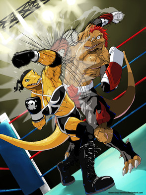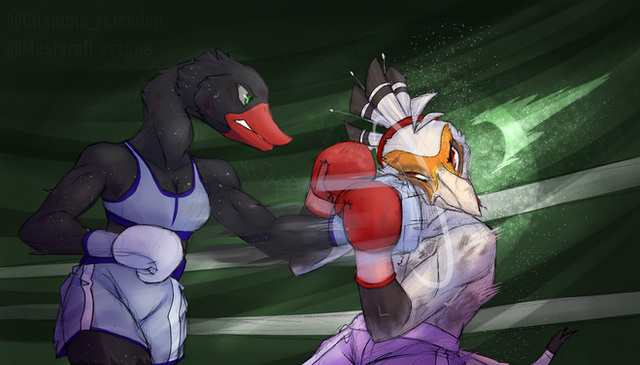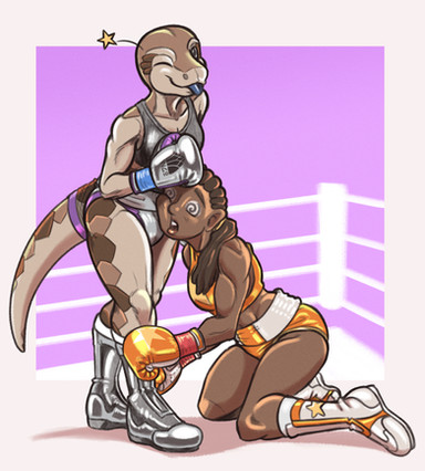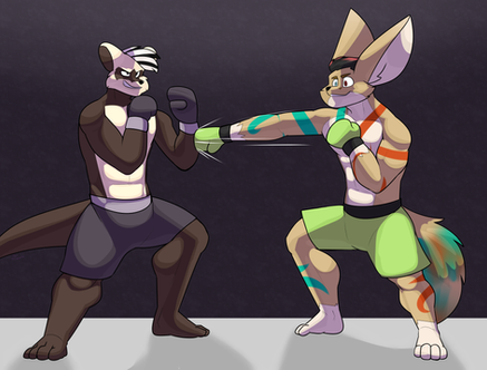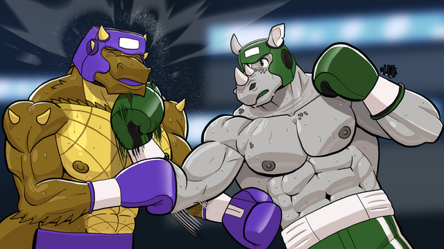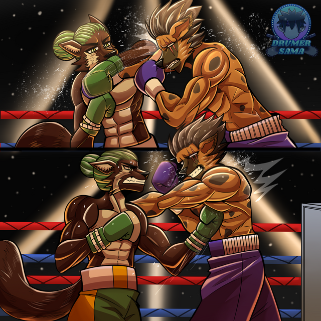 A half-color commission for www.furaffinity.net/user/rando⦠featuring their Rakesh landing a rather decisive hook to Armando, ejecting his mouthguard and subsequently putting him on the ground.Related content