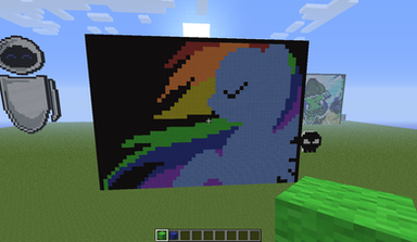 Derpy in wool. Note that this was done in Survival, so I harvested all of this wool myself from my vast blue and yellow herds.Obviously this is based on the colorized version of fyre-flye's sketch [link] I can't actually find a good original link to it.