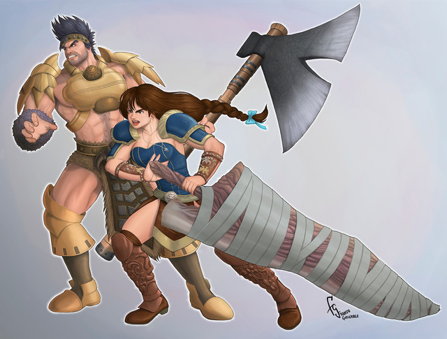 #axe #babe #barbarian #boobs #dwarf #fantasy #female #girl #gladiator #gladiators #male #sword #warrior #thicc #muscular