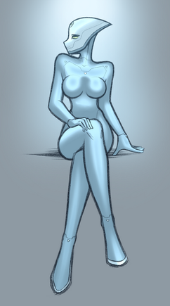 Here is my OC Negora sitting in a chair.Bio: fav.me/dcpimy3