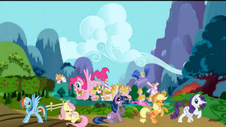 Now you should do one using the new photo they take in the S4 theme song, since there are at least twice as many ponies and, as such, twice as much Rarification . It would also be funny if you gave Rarity somepony else's mane style, so she ends up being the only one of them who doesn't have her own normal mane style.