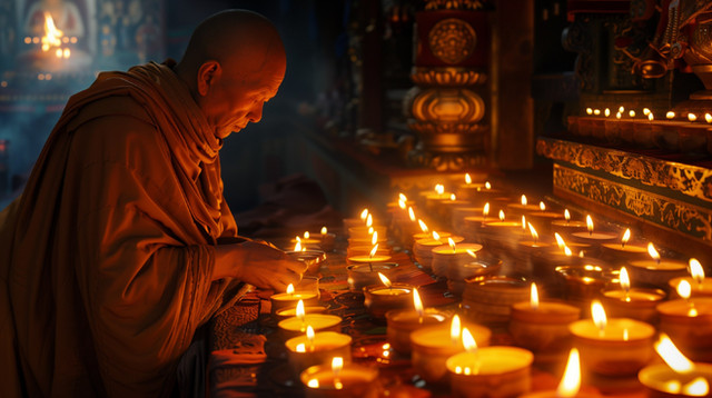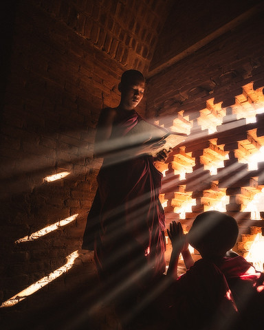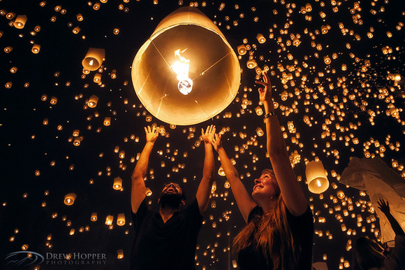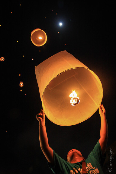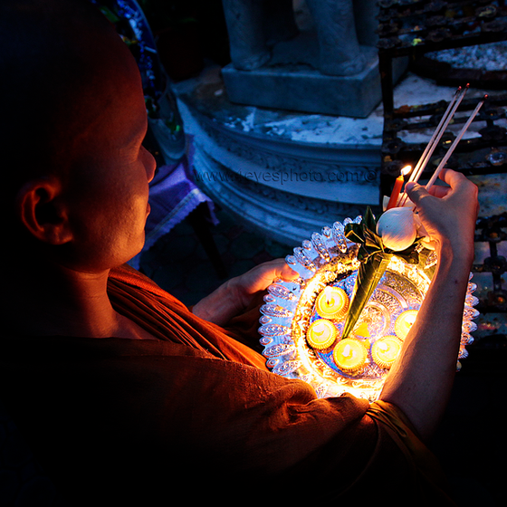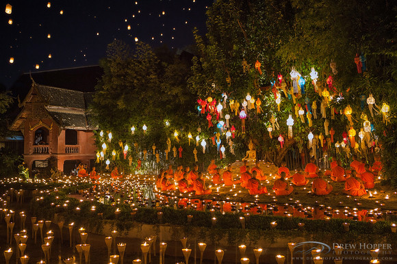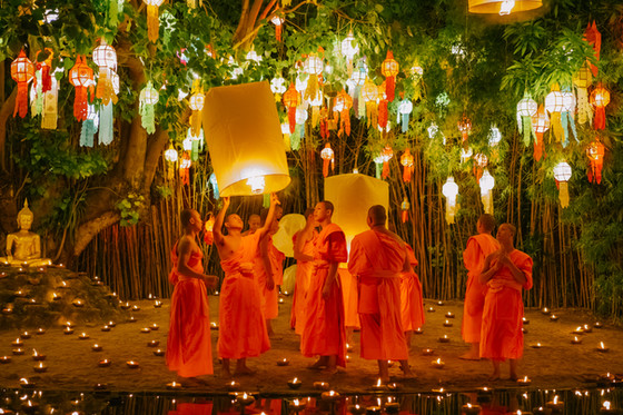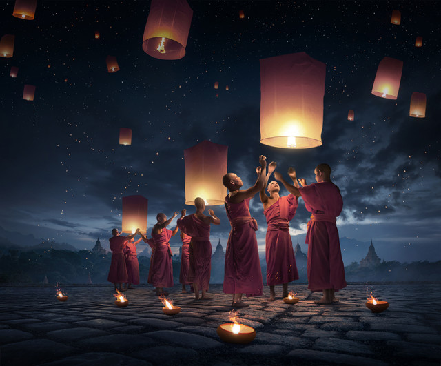 'Hypnotised'Two young Buddhist Monks celebrating the Loy Krathong Festival in Chiang Mai, Thailand Southeast Asia.