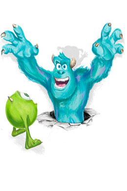 Great illustration. The pose is very alive and the colors work so well together... and it has Sully and Boo!!!! Gotta love that movie.