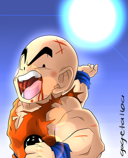 krillin's awesome and everybody knows it! lol Awesome pic, Krillin looks like he's gone crazy.
