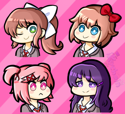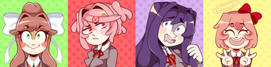 Made some DDLC buttons for my etsy!(Buttons are fun to make since they're so small and in a more simple style ^^ I've got a bunch of sets in mind that I want to work on, so I'll probs do a poll later this week to figure out which to do next!)