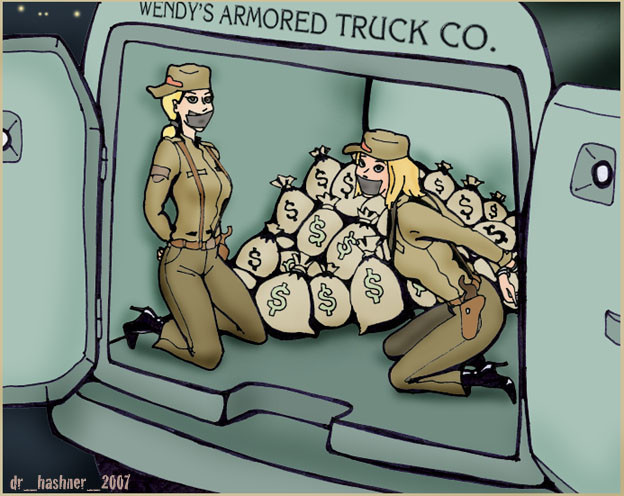 breaking news! the robbers stole the security's panties!