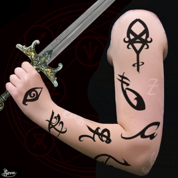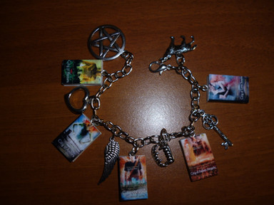 Pulseira com a temática Instrumentos Mortais. Inclui os pingentes: Espada, Arco e Flecha, Dentes de Vampiro, Asas de Anjo, Cobra de Izzy, Runa Poder Angelical, Bala de Prata e um Lobisomem.Tamanhos disponíveis: 16, 17, 18, 19 e 20cm (Medida da corrente + fecho)
