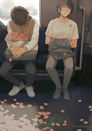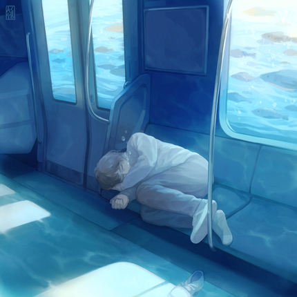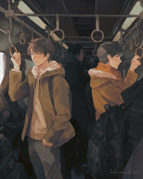 #aesthetic #anime #boy #digital #digitalart #hat #original #phone #riding #scenery #train