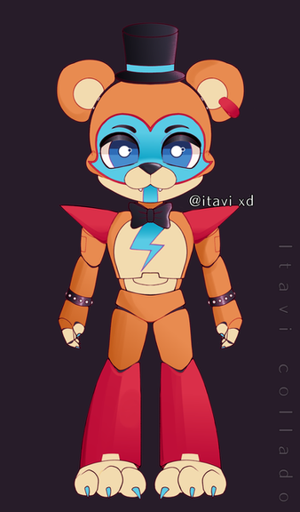 Say hello to my ginger fox, OC buttons. Buttons is a Glamrock animatronic. Part of the Glamrock family.#Gingerbread #Animatronic #Fox #Fnaf #DigitalArtist #Art #FiveNightsAtFreddie’s #Security #Glamrock