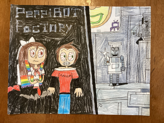 #angelwings #blackwidow #legs #originalcharacter #rainbowhair #scarlet #socks #wings #brownhairgirl #white_bow #conveyor_belt #arachne_monstergirl #pizzatowergame #boxxed_transformation #box_stamper