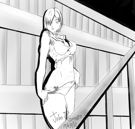 Your own anatomy and style looks so damn realistic but still holding some the fine toon details that make her busty body stand out, and nice coloring by the way the short mini-skirt also rules.