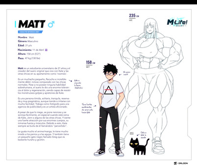 After graduating, he thought he had finally rid of her, however, both met again when they entered the same university. Years later, Matt created the growth serum as a project for a university science festival so he could win an international study scholarship. However, he never imagined that it would have such amazing and unpredictable effects. Since, until then it had never really worked, being only tested on plants without much success. Making them grow just a few centimeters.