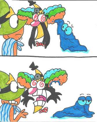 all Bucket is trying to do is get some sleepand yet these goobers, insist on having a music party inside his bedroom