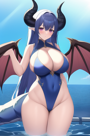 #beach #bikini #claw #dragon #dragoness #dragongirl #dress #paysage #scales #tails #white #wings #febelia #pixai_art