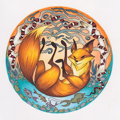 Welch ein wunderschönes Seidentuch! Die Gestaltung und besonders der Fuchs gefallen mir sehr.
