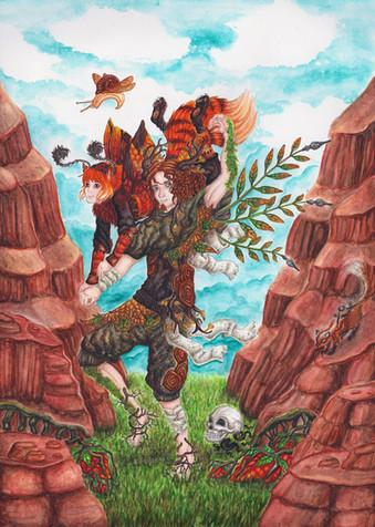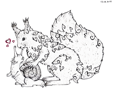 Ich mag das Bild total, der Spiralenfuchs, der selbst eine halbe Spirale andeutet, der einerseits für sich im Farbtropfenäther schwebt und andererseits am, auch spiralisierten, Baum zu hängen scheint, noch ein Nebensatz dann kommt das ende des Hauptsatzes, strahlt eine unglaubliche Ruhe und Geborgenheit aus. Er wirkt erwachsen, kampfbereit und gleichzeitig geborgen wie ein Embryo. Durch "Der Fuchs fällt nicht weit vom Stamm" wissen wir ja, dass das kleine Füchslein seine Affinität zu Bäumen beibehalten wird. ^^ Aber Blätter sind cooler : O Die sind nämliche mehrdeutig und stehen durch ihre unauflösbare Amvialenz und den nie wegzudenkenden gebrochenen Bedeutungskontext der die eindimensionalität Sprache sprengt, den Mythos näher, als es ein Baum tut. HA! Jetzt weißt du mal, wie es ist mit dem Studiumskram des Partners zugespammt zu werden : D