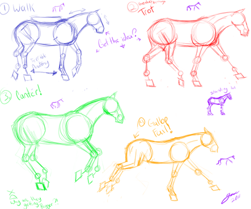 This is a really good illustration. I think it would even help out people who ride to better visualize the horses movements. Just a note though, the gallop is actually a four beat gait.