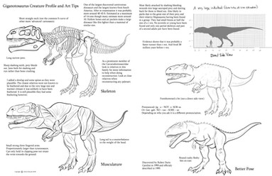 A sequel of sorts to the Raptor Tutorial. Again, this is as much for me as anyone else; my hope is that other people will be able to benefit from my rather nonsensical scribblings. I should be updating my comic tomorrow.Theropods are pretty hard to nail down; saying you're going to draw them is like saying you're going to draw a canine or feline. There are a LOT of variations, and half the scientists in the world are debating who goes where. I focused on the clade that Acrocanthosaurus belongs to, because those are the ones I'm really studying. (They're the villains in mah book.) I did add T-Rex in, but mostly for the benefit of showing the pinnacle of specialization the guy was. That bulldog neck and battering ram skull more than make up for his dinky forepaws.