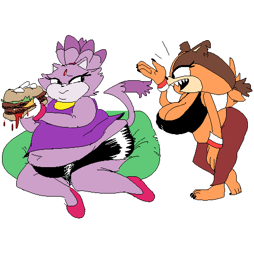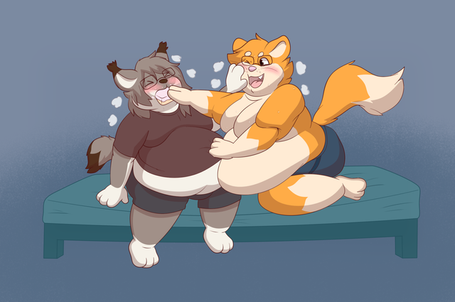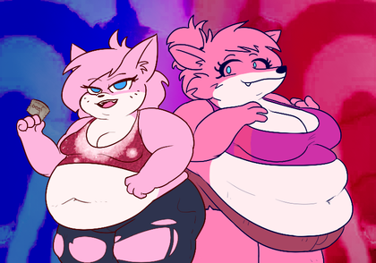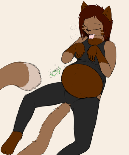 #aeris #leo #panting #fondlingbelly #anthrocat #anthrodoggirl #stockings #vgcats #bbwbelly