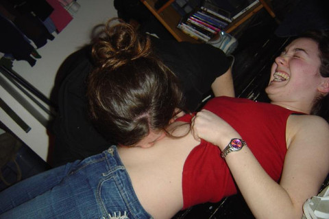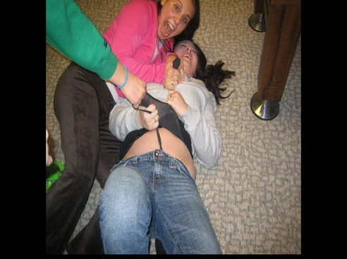 Wow! I am obsessed with this. That girl with her shirt up looks humiliated! She probably didn't think her friend drawing on her would tickle that bad and now it's to late to get her to stop. So cute 😍