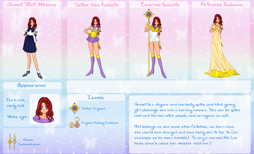 Now Mars! She wears her Ruby Bracelet in her right wrist, and her mother's pendant is in her choker. She keeps her heels and her gloves are sightly longer than Moon's. Her earrings are the PGSM ones.