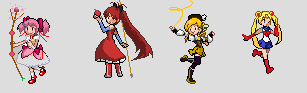 And the last one is here. All of them have different hairstyles, partly because I think these fit them better, partly because I'm really really tired and they are WAY too complicated.Like with the first ones, they are actually calling attacks (except now ojou-ringleted Chibimoon). They are completely fanmade, of course. Vesta has Burning Shockwave, Ceres has Petal Tourbillon (inspired by Cure Flora's Floral Tourbillon), Pallas has Orb Storm and Juno has Shifting Blast.