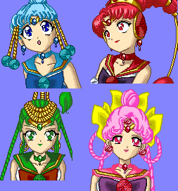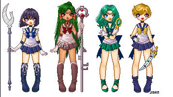 Exactly the same thing, but with the Outers. Also the very first time I'm happy with how Pluto's skin turned out. They're just being there, not really calling an attack.I think I'll make the Quartet+older Chibiusa next.