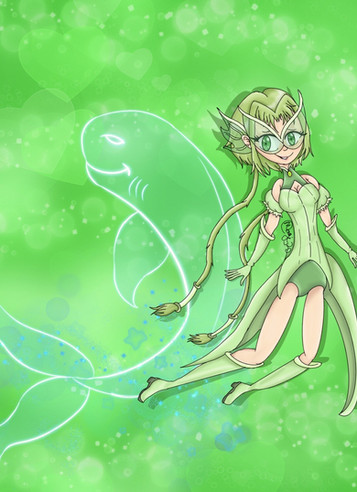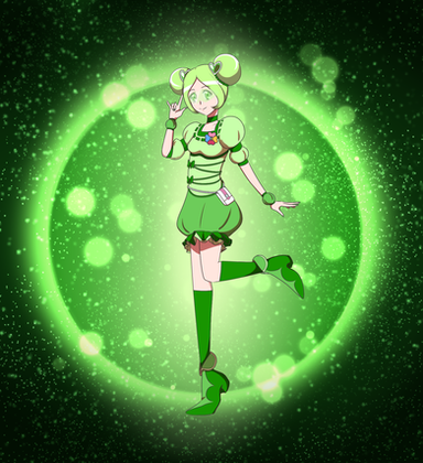 As for her redesign: the flappy things in her dress look more leafy/flowy, and she has a ruffly skirt under it now. Her shoes changed as well, they're simple flats with ankle straps, with a small piece of cloth attached to the strap to simulate a porpoise's tail. A green visor covers her eyes so she can see her surroundings better (since she couldn't see without her glasses) as well as actually see underwater. the same pieces of cloth are ttached to the visor and cover her ears. Her hair is also now in a low braid, rather than the tube thingy she had before. Like with Mint, her pendant has her actual Mew mark rather than Ichigo's. I also tried to make her look chubbier, but I don't think I got that, sadly.