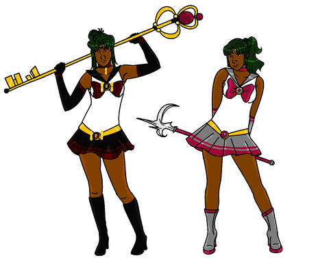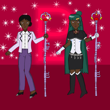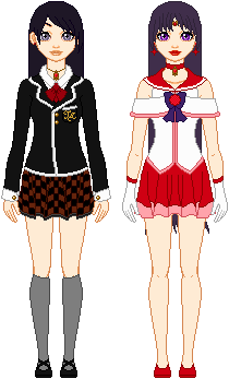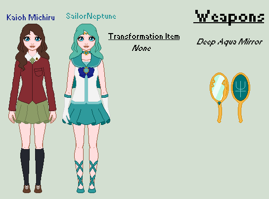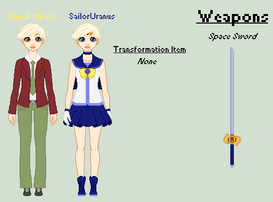 "I won't allow you to go through the Time Gate!"I pretty much threw Setsuna in a Mia Fey-esque suit and called it a day. She doesn't use anything to transform, being Pluto.