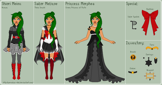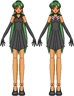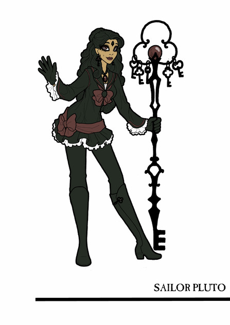Pluto has her keychain from the manga, different boots and the same choker and outfits.
