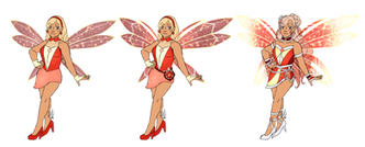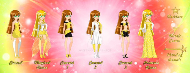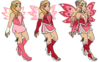 I did try for her outfit to be similar to the Charmix-Harmonix fusion I did with the other girls, hence the stripes in her dress and the frills in her sleeves. For insipration on her I used both Stella's and Flora's Harmonix forms.